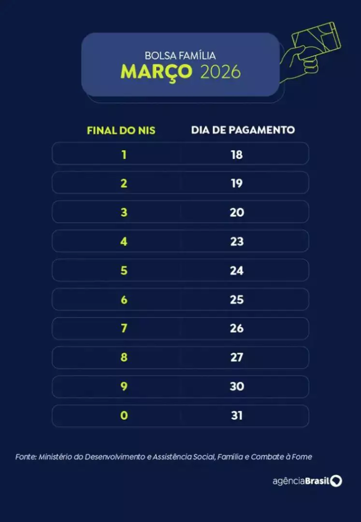 A Caixa Econômica Federal começou a pagar nesta quarta-feira (18) a parcela de março do programa Bolsa Família. Os primeiros a receber são os beneficiários com NIS (Número de Inscrição Social) com final 1.
