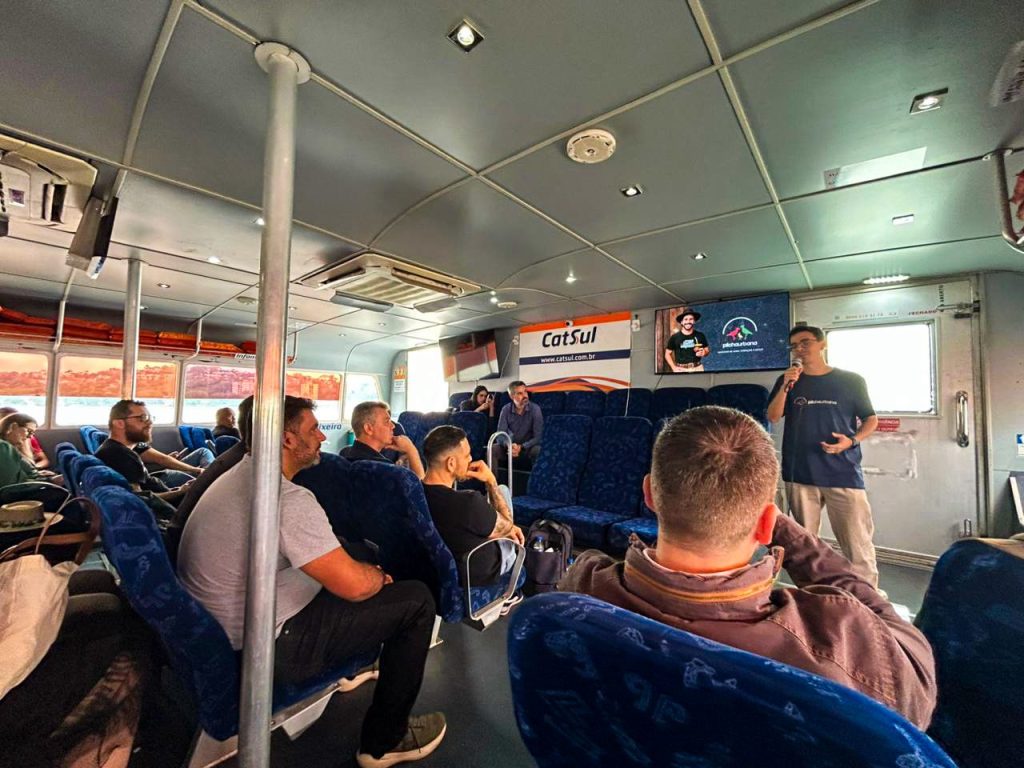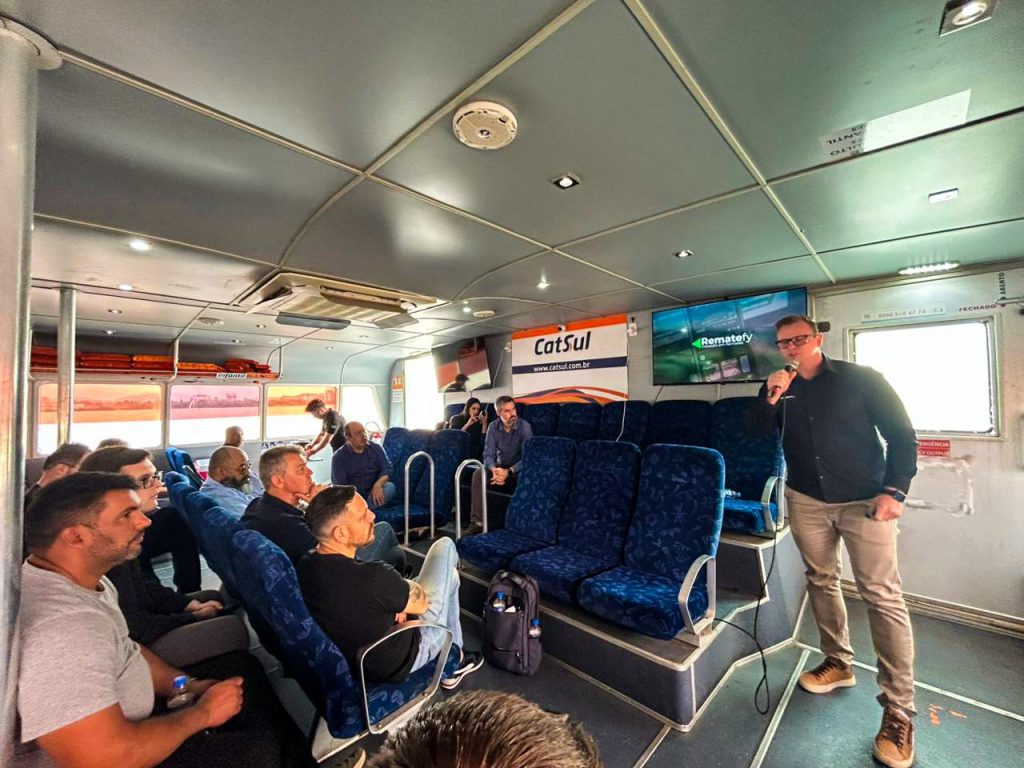 O evento inédito aconteceu a bordo de um catamarã, em navegação pelo rio Guaíba, reunindo autoridades municipais, empreendedores e representantes do ecossistema de inovação da Região Metropolitana.